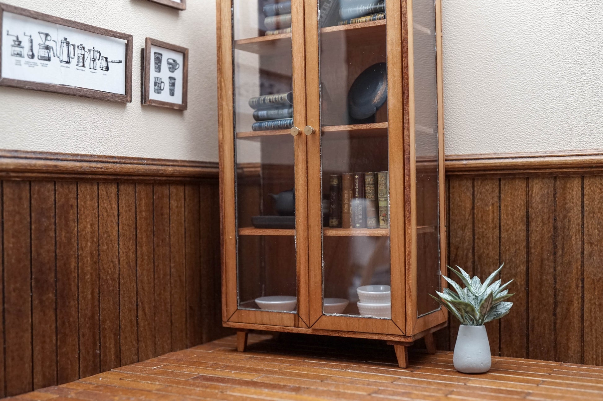 The doors are functional and can be opened and closed, adding a sense of openness. This furniture piece is perfect for enhancing the décor of your dollhouse.