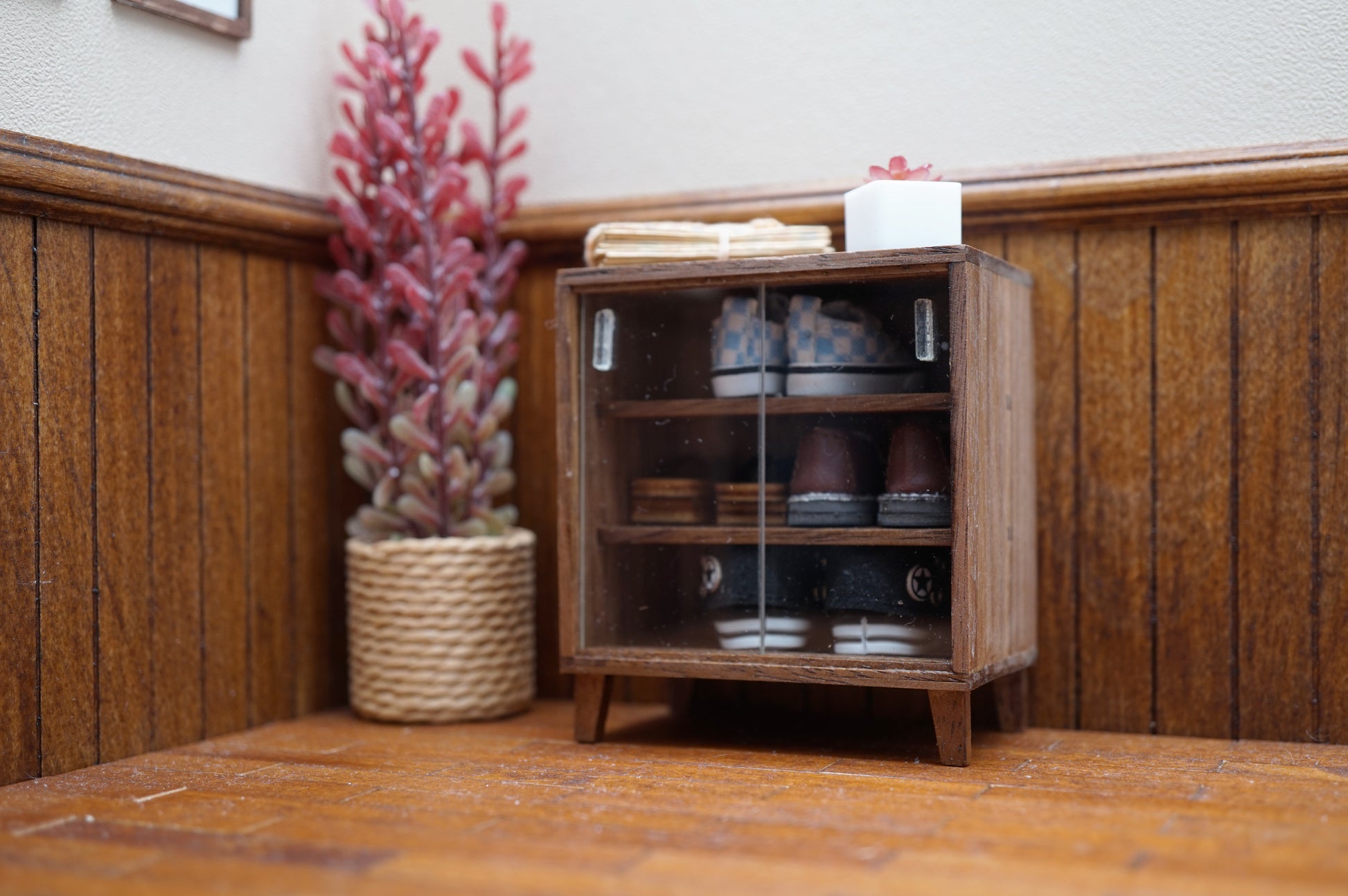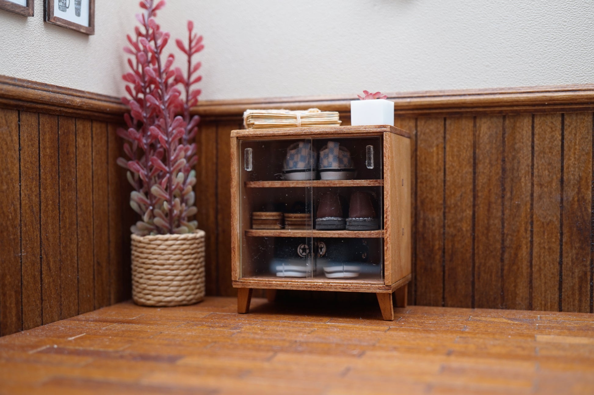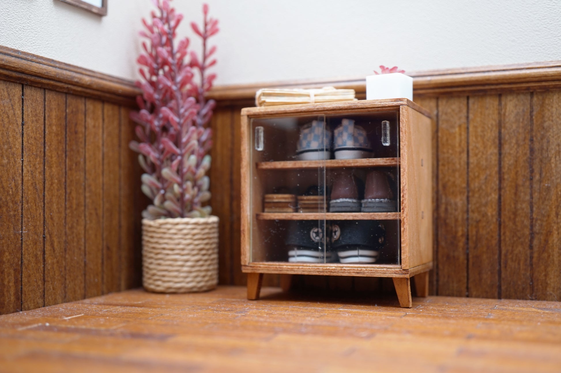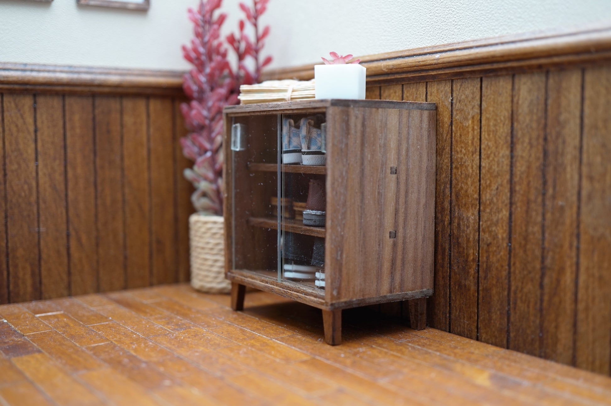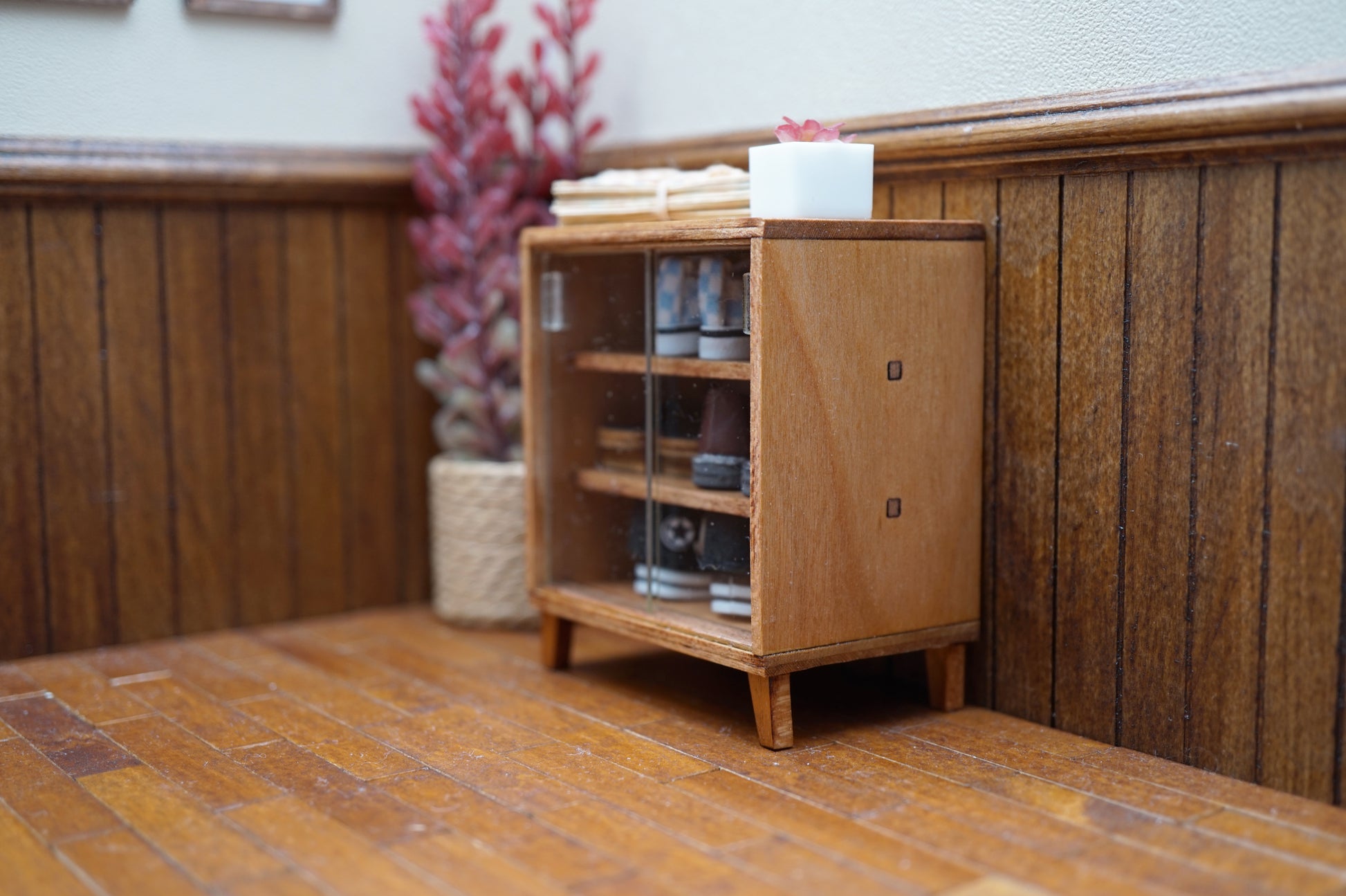Acrylic is inherently susceptible to scratches. To maintain its pristine condition, please use a wet tissue containing alcohol or a glasses cleaning cloth to gently wipe the surface. Accessories are not included; the product is the cabinet only.